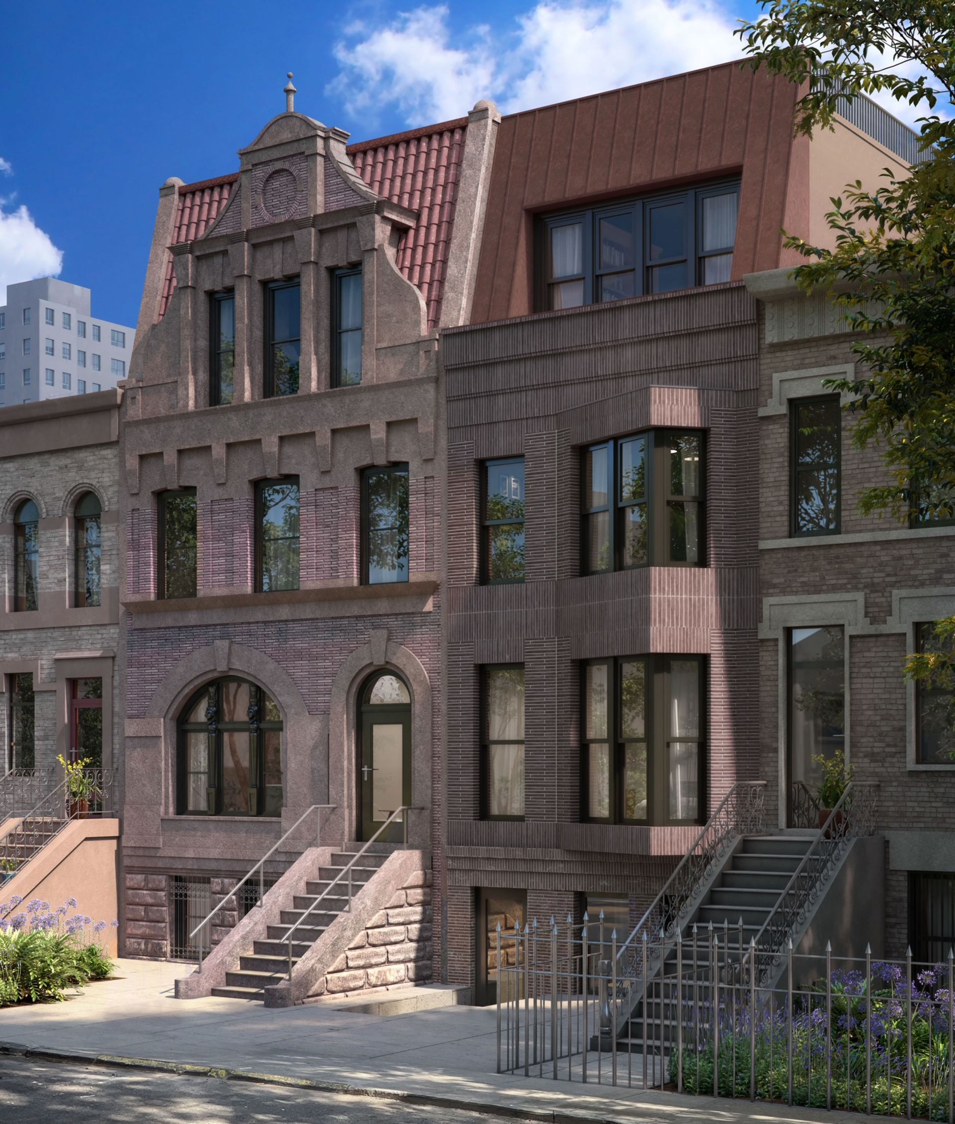 The homes will incorporate all-new mechanical, electrical, and plumbing systems, new windows, and thoughtfully designed kitchens with contemporary appliances. Bathrooms are envisioned with large-format porcelain tile, modern fixtures and vanities.